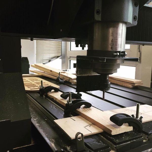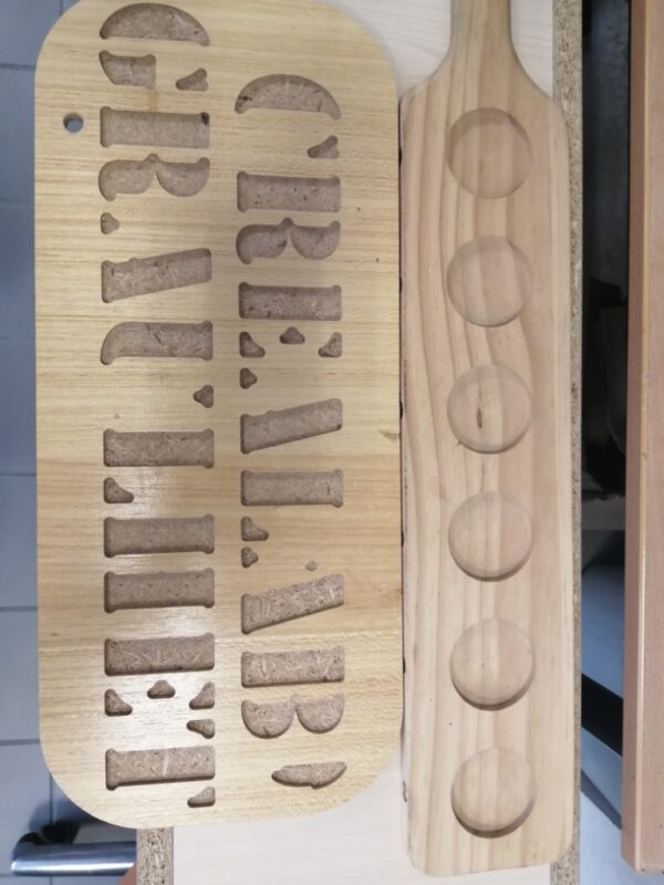 La fraiseuse numérique permet de découper des pièces de bois plus larges que la découpe laser afin de réaliser des meubles par exemple.